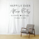 Sinais de boas-vindas da recepção de casamento branca Chic e tapeçaria de retrocesso fotográfico apresentando "Felizmente, nunca depois da Festa" em uma simples tipografia e um roteiro moderno para na moda, seus nomes se juntaram por um coração e sua data de recepção.