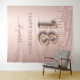 Uma tapeçaria para uma festa de 18 anos feminina e glamorosa. Um fundo gradiente rosa dourado-rosado com pingos de brilho falso elegantes cor dourado-rosado, efeito de tinta pingando. Com o texto: Feliz Aniversário. Personalize e adicione um nome. O nome é escrito em dourado-rosado escuro com uma fonte moderna de letra manuscrita com floreios. O número 18 é escrito com uma fonte de balão moderna. Para manter os floreios, exclua apenas o nome da amostra, deixando os espaços ou emojis antes e depois do nome. Pode ser usado como uma faixa de boas-vindas, decoração de parede para a festa ou como um fundo para cabine de fotos.