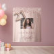 Uma tapeçaria para uma festa de 21º aniversário feminina e glamorosa. Um fundo gradiente rosa dourado-rosado com pingos de brilho falso dourado-rosado elegante, efeito de tinta pingando. Personalize e adicione sua própria foto de alta qualidade da aniversariante. O texto: o nome é escrito em dourado-rosado escuro com uma fonte manuscrita moderna com floreios. O número 21 é escrito com uma fonte de balão moderna. Para manter os floreios, apenas exclua o nome da amostra, deixando os espaços ou emojis antes e depois do nome. Pode ser usado como um banner de boas-vindas, decoração de parede para a festa ou como um fundo para cabine de fotos.