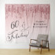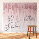 Tapeçaria personalizada elegante para festa de 60 anos com foto de fundo com glitter falso rosa e dourado rosa pingando do topo contra um fundo ombre rosa e "60 & Fabulosa" escrito em letra cursiva estilosa. Você pode personalizar com o nome dela. Uma área em branco no canto inferior fornece espaço para os convidados tirarem fotos contra o fundo.