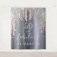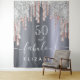 Uma tapeçaria de aniversário de 50 anos (ou qualquer idade) moderna e glamorosa. Um fundo falso de metal prateado, com aparência de folha decorado com brilho rosa dourado, rosa e falso brilho prateado, com efeito de tinta pingando. Com o texto: 50 e fabulosa. Personalize e adicione um nome. Texto em branco. A palavra Fabulosa é escrita com um estilo de letra moderna e manuscrita com floreios.