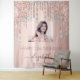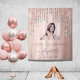 Uma tapeçaria para uma festa de 21 anos (ou qualquer idade) feminina e glamorosa. Um fundo gradiente rosa dourado-rosado com pingos elegantes de purpurina rosa dourada e prata falsa. Personalize e adicione sua própria foto de alta qualidade da aniversariante. O texto: o nome é escrito em rosa dourado escuro com um estilo de letra manuscrita moderna com floreios. Para manter os floreios, exclua apenas o nome da amostra, deixando os espaços ou emojis antes e depois do nome. Modelos para um nome, idade 21 e uma data. Pode ser usado como decoração de parede para a festa ou como pano de fundo para cabine de fotos.
