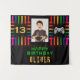 Tapeçaria com Festa de aniversário Neon do Controlador de Jogo de Vídeo. Controladora de jogos em uma luz néon vívida e colorida sobre um fundo preto. Adicione seu nome, foto e idade.