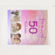 Para uma festa de 50 anos (ou qualquer idade). Uma colagem de 3 fotos suas com amigos, familiares, interesses ou animais de estimação. Um fundo gradiente roxo e rosa. Decorado com gotas de glitter falso. Personalize e adicione o nome dela, idade 50 e uma data. Data de nascimento ou data da festa de aniversário. Texto roxo. Perfeito para uma festa surpresa! Use como banner de boas-vindas, decoração de parede ou como fundo para cabine de fotos.