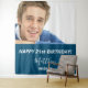 Uma tapeçaria para uma festa de aniversário de 21 anos (ou qualquer idade) para homens. Um fundo azul clássico. Personalize e adicione sua própria foto de alta qualidade do aniversariante. O texto: O nome é branco com um estilo de letra manuscrita moderna. Modelos para um nome, idade 21 e uma data. Pode ser usado como decoração de parede para a festa ou como fundo para cabine de fotos.