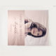 Uma tapeçaria para uma festa de 21 anos (ou qualquer idade) feminina e glamorosa. Um fundo gradiente rosa dourado-rosado. Personalize e adicione sua própria foto de alta qualidade da aniversariante. O texto: O nome é escrito em dourado-rosado escuro com um estilo de letra manuscrita moderna com floreios. Para manter os floreios, apenas exclua o nome da amostra, deixando os espaços ou emojis antes e depois do nome. Modelos para um nome, idade 21 e uma data. Pode ser usado como decoração de parede para a festa ou como fundo para cabine de fotos.