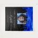 Uma tapeçaria para uma festa de 21 anos (ou qualquer idade) feminina e glamorosa. Um fundo preto com aparência de tinta azul real pingando. Personalize e adicione sua própria foto de alta qualidade da aniversariante. O texto: O nome é escrito com um estilo de letra manuscrita moderna com floreios. Para manter os floreios, apenas exclua o nome da amostra, deixando os espaços ou emojis antes e depois do nome. Modelos para um nome, idade 21 e uma data. Pode ser usado como decoração de parede para a festa ou como pano de fundo para cabine de fotos.