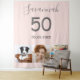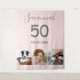 Para uma festa de aniversário de 50ª (ou qualquer idade). Uma colagem de 3 fotos de seus próprios amigos, família, interesses ou animais de estimação. Rosa dourado, cor de fundo rosa. Personalize e adicione seu nome, 50 anos e uma data. Data de nascimento ou data da festa de aniversário. Texto colorido da cinza.