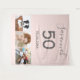 Para uma festa de 50 anos (ou qualquer idade). Uma colagem de 3 fotos suas de amigos, familiares, interesses ou animais de estimação. Rosa dourado, cor de fundo rosa. Personalize e adicione o nome dela, idade 50 e uma data. Data de nascimento ou data da festa de aniversário. Texto cinza.