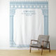 Fundo de festa de toga grega ou romana elegante com pilares de templo minimalistas e padrão de meandro grego em azul. Produto personalizável para uma celebração memorável. Perfeito para a sua festa temática de Grécia Antiga ou Roma Antiga.