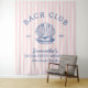 Tapeçaria personalizada de festa de despedida de solteira à beira-mar em rosa, tapeçaria de festa de despedida de solteira de luxo retrô em azul-marinho com uma concha e uma pérola, e listras náuticas em rosa-claro, é perfeita como pano de fundo para fotos de festa de despedida de solteira. Celebre seu chá de panela com estilo com o tema perfeito de festa de despedida de solteira à beira-mar em rosa ousado, o tema perfeito para a noiva nostálgica retrô dos anos 70 e suas damas de honra.