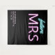 Lindo tecido personalizado preto moderno "futura Sra" para o seu despedida de solteira, com "futura" e "SRA" escritos em azul turquesa e rosa choque com efeito de luzes de neon. Você pode personalizar com seu nome e data da festa. O canto inferior é deixado em branco para uma área para seus convidados tirarem fotos.
