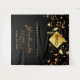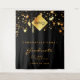 Um fundo preto chic. Decorado com estrelas ouros e um boné de ouro moderno e abstrato, chapéu, tassel com dentro de ano. Texto: Parabéns! O texto: Formando e o nome são escritos com um grande script de estilo escrito à mão. Para ele e para ela. Uma faixa, decoração de festas ou cabine de fotos, pano de fundo para uma festa de formatura 2023 (ou qualquer ano).