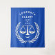 decoração de festas de formatura da faculdade de direito para um evento de formando de advogado com escalas engraçadas de desenho da justiça sobre fundo azul. Edite texto para adicionar ano e o nome do seu formando de Direito, advogado ou juiz favorito.
