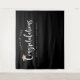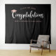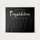 Pano de fundo extra grande para cerimônia de formatura ou festa para todas as fotos dos formandos! O design é minimalista e apresenta um design de letra cursiva "Parabéns" moderno e branco com um destaque de boina de formatura em rose gold em um fundo preto. Personalize o texto personalizado com o ano da turma e o nome da escola.