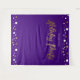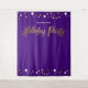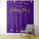 Monte uma cabine de selfie que duplique como um sinal de boas-vindas na sua próxima Festa de Natal Corporativa. Letra "festa de Natal" impressa em dourado para combinar com os convites desta coleção. Pontos de confete dourados e brancos em um fundo roxo elegante.