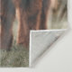 Festa de primeiro aniversário com monograma de bezerro de vaca das Terras Altas. Jovem bezerro impressionante de gado escocês das Terras Altas em um campo gramado de outono com cores suaves. Belo casaco laranja escuro peludo contrastando com grama e árvores amarelo claro verde em bokeh ao fundo. Monograma personalizável com seu nome e inicial à esquerda. Tudo para o primeiro aniversário do seu filho, convites, pratos de papel, copos e mais.