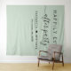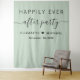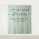 Tapeçaria de fundo de fotografia de recepção de casamento ou festa verde minimalista com "Festa Feliz para Sempre" em uma mistura de tipografia simples e um script moderno com floreios, seus primeiros nomes e a data do evento.