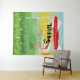 Um campo colorido com raios de sol brilhando e uma fita flutuando sobre os campos é o design para esta tapeçaria.
