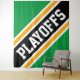 Este design esportivo apresenta o texto FINAIS atlético dentro de listras diagonais largas e destacadas em preto, branco e laranja amarelo dourado contra listras externas largas e brilhantes em verde. O texto neste design pode ser personalizado.