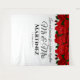 Sinal de boas-vindas de casamento festivo, decorativo e colorido e fundo para parede de fotos, o design é para um casal apaixonado que ama rosas vermelhas apaixonadas, brilhantes e ousadas como o amor deles um pelo outro. A fonte de texto tradicional e romântica combinada com uma tipografia serifada mais simples mantém tudo tradicional e elegante. Todo o texto é personalizável para que você escolha a mensagem de boas-vindas personalizada para seus convidados. Você também pode alterar a fonte para outra que combine com todo o estilo e decoração do seu casamento.
