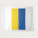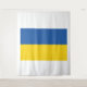 The flag of Ukraine is a banner of two equally sized horizontal bands of blue and yellow. The top represents sky and the yellow represents wheat.