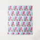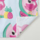 Uma tapeçaria com um padrão composto por uma ilustração fofinha - flamingo rosa com melancias e abacaxi. Esquema de cor rosa e verde. Sumério e tropical.