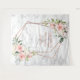 Moderna e moderna, esta maravilhosa design de tapeçaria de casamento apresenta um falso rosa de ouro geométrico embelezado com rosas cor-de-água rosa e flores, sobre uma textura falsa de mármore branco. Os nomes dos casais e alguns detalhes do casamento estão em uma cor de cobre equivalente. Convidados Elegantes de Direitos Autorais. Todos os direitos reservados.