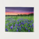 Esta incrível foto do Getty Images apresenta uma pastagem do Texas cheia de bluebonnets no pôr do sol.
