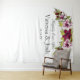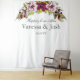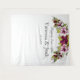 Este design foi criado para o casal elegante e sofisticado que ama detalhes ousados e, ainda assim, clássicos. As flores nesta criação são luxuosas. Na base do arranjo floral estão vibrantes folhas de eucalipto e samambaia verdes segurando belas flores grandes e frutos delicadamente pintados em uma rica cor boysenberry, combinadas com magnólias brancas sombreada com a mesma cor de fruta. Este lindo painel de fundo fotográfico tem esses belos arranjos florais arqueados no topo, aninhando a tipografia personalizável "Happily Ever After" (Felicemente Para Sempre), os nomes dos noivos e a data do evento. A fonte de caligrafia inglesa dá a ela os toques finais de elegância.