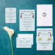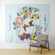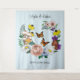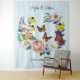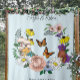 Um fundo azul claro com flores silvestres, cogumelos, margaridas brancas e borboletas monarcas. Perfeito para casais que amam o exterior e encanto rústico.