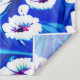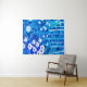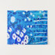 Tapeçaria em semiabstrato de uma floresta de fantasia com flores, folhagem, árvores e aves, em tons de azul e branco de cobalto