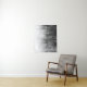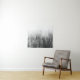 Esta foto preto e branco caracteriza uma floresta coberta na névoa.