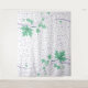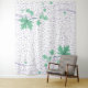 Maple deixa tapeçaria de menta e lavanda. Mostra lindas folhas de maple em espirais e bolinhas roxas, verdes e lavandas.