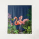 Textura clássica do tecido azul marinho com folhas Flamingos cor-de-rosa e folhas tropicais verdes