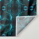Não há estampado, os traciano ou azul esverdeado chamador geram formas parecem que flutu sobre um de espaço ou fundo ciano ou esços, ou sobre um emaranhado de pequenos traços ciano de tonalidade clara e escura.