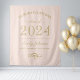 Sinal de fundo de foto para festa de formatura "Parabéns, Turma de 2023" personalizado e elegante, com design tipográfico e esquema de cores rosa e dourado antigo. Personalize com o nome do formando e da escola. As cores podem ser personalizadas para combinar com as cores da festa ou da escola.
