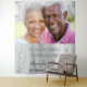 Uma tapeçaria celebrando o 60º aniversário de casamento de diamante. Um fundo elegante com aparência de prata falsa, decorado com diamantes falsos. Personalize e adicione sua própria foto de alta qualidade do casal feliz. O texto: Os nomes são escritos com uma fonte manuscrita moderna preta. Modelos para nomes e data. Pode ser usado como decoração de parede para a festa, fundo de cabine de fotos ou lembrança.