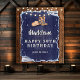 Um cenário de festa de aniversário rústico, moderno, elegante e chique com um tema de jeans e diamantes. Ele apresenta um fundo de remendo de jeans em uma placa de madeira desgastada, um par de botas de cowgirl com um detalhe de rosa coberta de cristais (este é um efeito digital), um chapéu de cowgirl com um detalhe de cristais (também um efeito digital) e tipografia em branco, além de cordões de luzes. Um design chique de "jeans e diamantes" para uma mulher no seu aniversário!