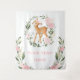 Este design elegante apresenta ilustração de um adorável cervo bebê, rosas rosa e folhagem moderna em aquarela em verde suave e dourado. Personalize a tapeçaria com sua própria mensagem clicando no botão "Personalizar".