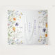 Este design apresenta uma borda colorida de flores silvestres de aquarela em tons de roxo, ouro, verde e azul.