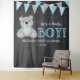 Decore o chá de bebê do seu menino com este lindo fundo de cena de chá de bebê do urso de pelúcia azul e cinza.