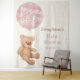 Use esta tapeçaria como um adereço de fundo para fotos no seu chá de bebê temático de ursinho para uma menina! Este pano de fundo é personalizável e permite que você adicione seu próprio texto e detalhes! Ele apresenta um adorável ursinho desenhado à mão segurando um balão xadrez búfalo rosa com as palavras "É uma menina!".