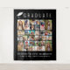 Elegante fundo de cenário de fotobooth preto para festa de formatura para celebrar o formando, apresentando "FORMADO" na parte superior em tipografia branca grande ao lado de uma ilustração branca de um chapéu de formatura, uma colagem de trinta fotos para comemorar sua família, amigos e conquistas, e seu nome, ano de turma e escola em tipografia branca moderna.