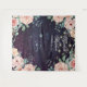 Modelos de fundo para cabine de fotos de casamento - Elegantes flores cor-de-rosa em aquarela, rosas brancas e pêssegos com luzes de corda sobre fundo de luzes bokeh roxas brilhantes.