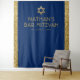 Tapeçaria personalizada de fundo para fotos de Bar Mitzvah com fundo azul-marinho e bordas de faixa cintilante dourada e estrela de Davi falsa no topo. Altere as cores do fundo e as fontes clicando em "personalizar ainda mais" para criar o seu próprio.