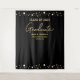 Personalize este pano de fundo para foto da turma de 2023 (estação de cabine de fotos) para o formando. Com estampa de confete dourado e branco em fundo preto. Tipografia moderna e manuscrita para a palavra "Graduado". Celebre dentro de casa com esta decoração de parede. Use isto para festa de formatura do ensino médio, faculdade ou universidade.