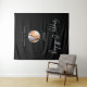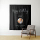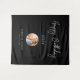Esta tapeçaria moderna é perfeita para uma festa de aniversário com tema de cores preto e prata chic. Seus convidados vão adorar tirar uma foto com este fundo de festa sofisticado e lembrar do seu dia especial. O design apresenta um "Feliz Aniversário" em letra cursiva prateada e texto personalizado. Você pode personalizar o nome, evento e data na parte inferior da tapeçaria. Obrigado!