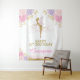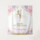 Lindo fundo de festa com rosas em aquarela em tons de rosa, roxo e dourado e uma fada mágica cintilante. Use o campo de modelo para adicionar o nome da sua criança.