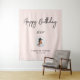 Esta tapeçaria moderna é perfeita para uma festa de aniversário com tema de cor preta e rosa chic. Seus convidados vão gostar de tirar uma foto com este fundo de festa sofisticado e lembrar do seu dia especial. O design apresenta "Feliz Aniversário" em letra cursiva preta e texto personalizado. Você pode personalizar o nome, evento e data na parte inferior da tapeçaria. Obrigado!